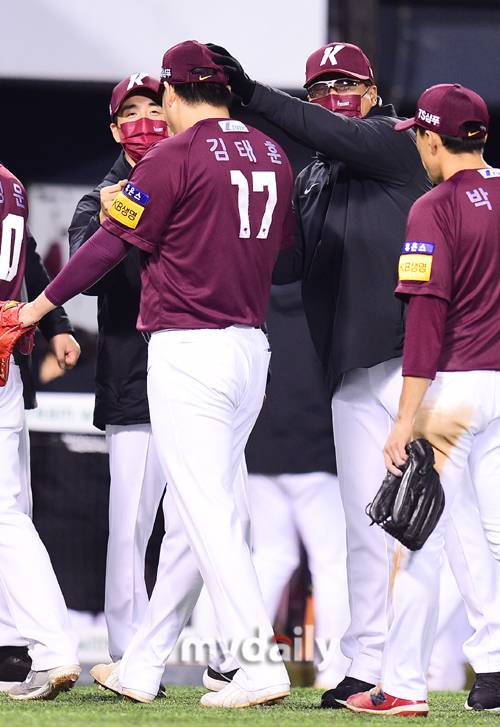[MD포토] 홍원기 감독 '김태훈 진땀 흘렸어'