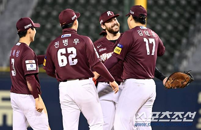 2021 KBO리그 키움 히어로즈와 LG 트윈스의 경기가 20일 잠실야구장에서 열렸다. 키움이 6-5로 승리했다. 경기 종료 후 기쁨을 나누는 키움 선수들의 모습. 잠실=허상욱 기자 wook@sportschosun.com/2021.10.20/