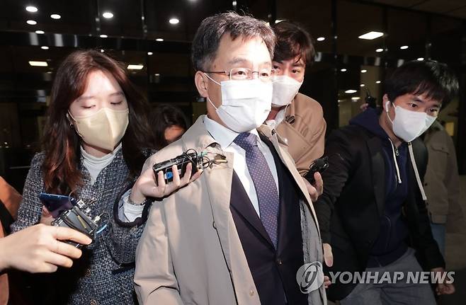 (서울=연합뉴스) 한종찬 기자 = 화천대유 대주주 김만배씨가 20일 오후 서울 서초구 서울중앙지검에서 조사를 마친 뒤 밖으로 나서고 있다. 2021.10.20