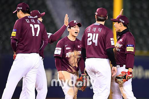 [MD포토] 기뻐하는 키움 '1점차 승리 지켰어'