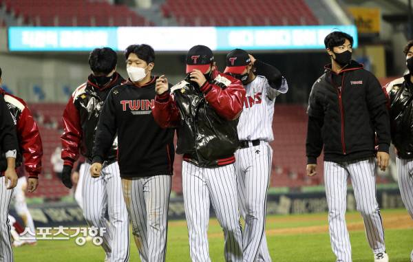 20일 오후 서울 잠실구장에서 열린 2021 KBO 프로야구 키움 와 LG 트윈스와의 경기. 키움에 6:5로 패한 LG 선수들이 마운드를 나서고 있다. 2021.10.20