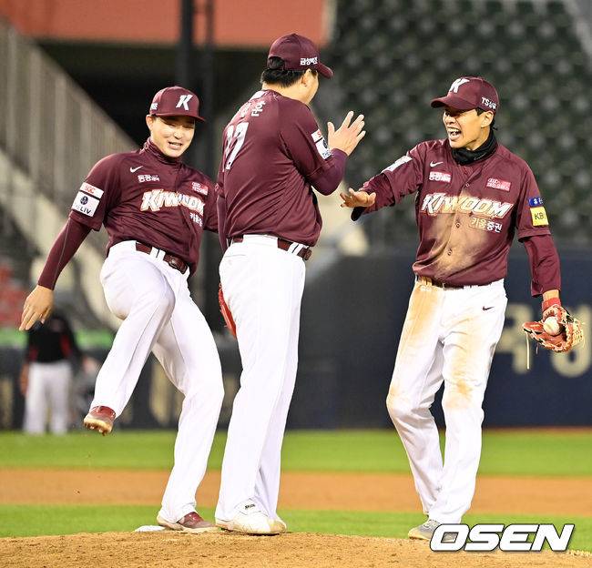 경기를 마치고 키움 선수들이 승리를 기뻐하고 있다. /jpnews@osen.co.kr