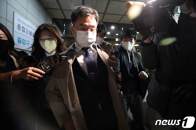 (서울=뉴스1) 박정호 기자 = 경기 성남시 대장동 개발사업 특혜 의혹의 핵심 인물이자 화천대유의 대주주 김만배 씨가 20일 밤 서울 서초구 서울중앙지방검찰청에서 조사를 받은 뒤 귀가하고 있다. 2021.10.20/뉴스1