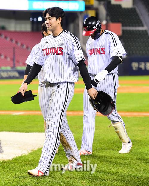 [마이데일리 = 곽경훈 기자] LG 홍창기와 이재원이 20일 오후 서울 잠실야구장에서 진행된 '2021 신한은행 SOL KBO리그' 키움-LG의 경기에서 6-5로 패배한 뒤 아쉬워 하고 있다.