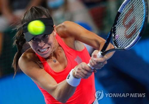 epa09534187 Ajla Tomljanovic of Australia in action against Aryna Sabalenka of Belarus during their women's second round match at the Kremlin Cup tennis tournament in Moscow, Russia, 20 October 2021. EPA/SERGEI ILNITSKY