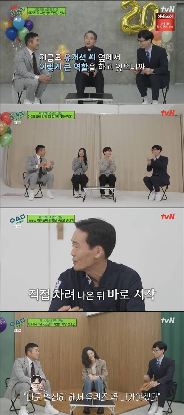 20일 방송된 tvN 예능프로그램 '유 퀴즈 온 더 블럭'(이하 '유퀴즈')에서는 조현권 신부님, 유튜버 떙깡, 김쌍식 제빵사, 정호연이 출연하는 모습이 그려졌다.