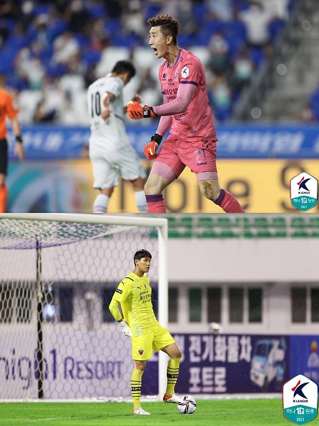 [골닷컴, 전주] 박병규 기자 = 포항 스틸러스의 이준 골키퍼가 베테랑 조현우 골키퍼를 상대로 잘 싸웠다. 이준은 볼을 매끄럽게 처리하지 못하면서 실점의 빌미를 제공했지만 동료들의 도움 속에 자신감을 되찾으며 팀의 승리를 이끌었다.