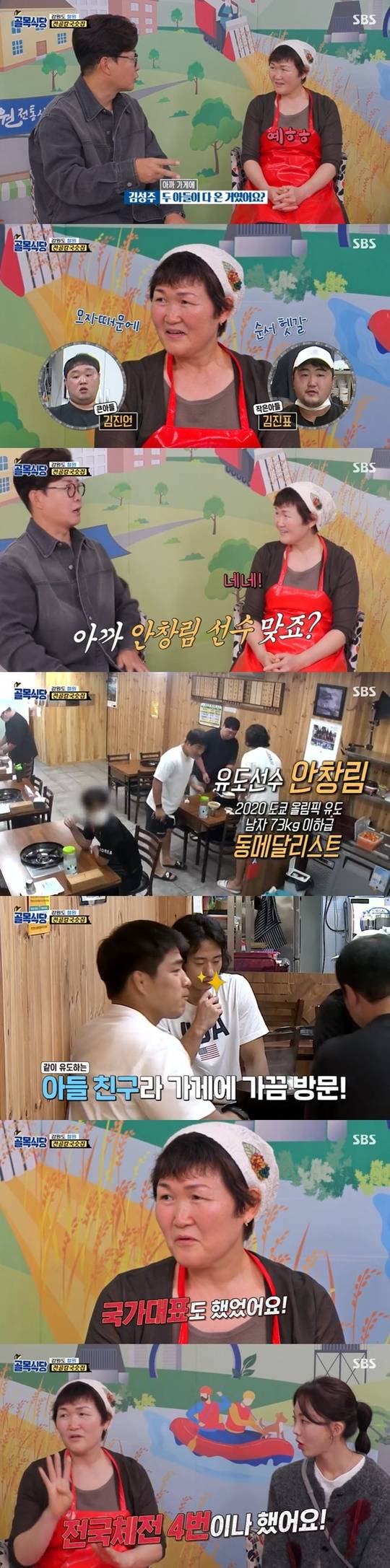 이어 김성주가 전골칼국숫집 사장에게 안창림 선수에 대해 질문하자 전골칼국숫집 사장은 안창림 선수가 가끔 온다고 말했다. 이에 김성주가 “아들 둘이 다 대학까지 유도하고? 국가대표로 키우시지?”라고 묻자 사장은 “국가대표도 했었다. 전국체전 4번이나 했다. 금메달이 동메달, 은메달보다 더 많았다”고 두 아들을 자랑했다.