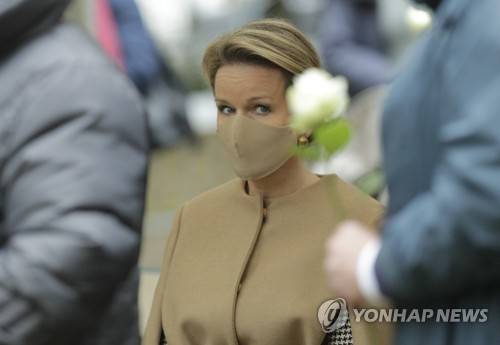 epa09534220 Queen Mathilde of Belgium during a commemoration ceremony for the twenty-five anniversary of the so-called white march with a tribute to all the missing children and the victims of sexual exploitation in Brussels parc, Belgium 20 October 2021. Around 350.000 persons the biggest demonstration ever in Belgium, attend the white march in 1996, following the protest of parents of victims and missing children to fight paedophile acts, after the arrestation of paedophiles in Belgium EPA/OLIVIER HOSLET
