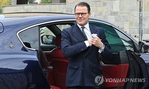 epa09534224 Prince Daniel of Sweden upon his arrival for a visit to the Industrial Union of Turin, Italy, 20 October 2021. EPA/Alessandro Di Marco