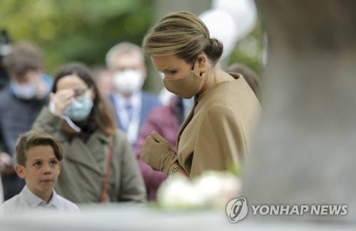epa09534221 Queen Mathilde of Belgium during a commemoration ceremony for the twenty-five anniversary of the so-called white march with a tribute to all the missing children and the victims of sexual exploitation in Brussels parc, Belgium 20 October 2021. Around 350.000 persons the biggest demonstration ever in Belgium, attend the white march in 1996, following the protest of parents of victims and missing children to fight paedophile acts, after the arrestation of paedophiles in Belgium EPA/OLIVIER HOSLET