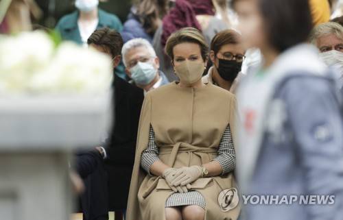 epa09534218 Queen Mathilde of Belgium during a commemoration ceremony for the twenty-five anniversary of the so-called white march with a tribute to all the missing children and the victims of sexual exploitation in Brussels parc, Belgium 20 October 2021. Around 350.000 persons the biggest demonstration ever in Belgium, attend the white march in 1996, following the protest of parents of victims and missing children to fight paedophile acts, after the arrestation of paedophiles in Belgium EPA/OLIVIER HOSLET