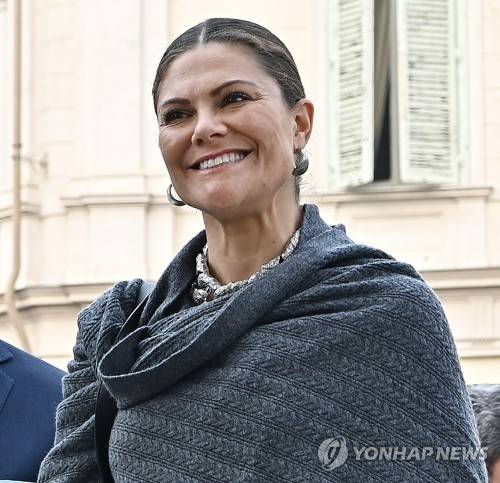epa09534229 The Crown Princess of Sweden Victoria upon her arrival for a visit to the Industrial Union of Turin, Italy, 20 October 2021. EPA/Alessandro Di Marco