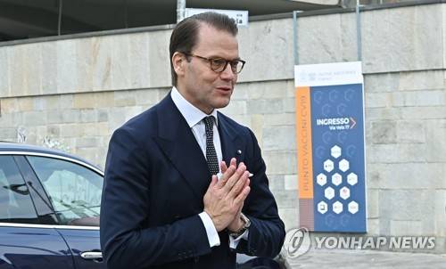epa09534231 Prince Daniel of Sweden upon his arrival for a visit to the Industrial Union of Turin, Italy, 20 October 2021. EPA/Alessandro Di Marco