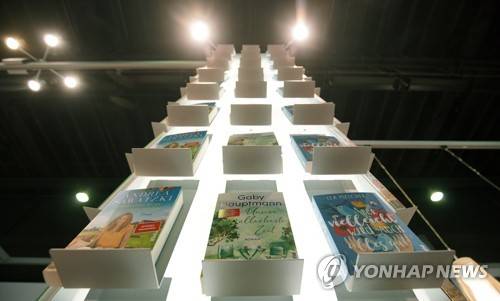 epa09534240 Books are on display at the international book fair Frankfurter Buchmesse 2021, in Frankfurt am Main, Germany, 20 October 2021. The 73rd Frankfurt Book Fair runs from 20 to 24 October 2021. This year's Guest of Honor Country is Canada. EPA/RONALD WITTEK