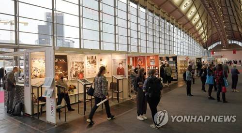 epa09534245 People visit the international book fair Frankfurter Buchmesse 2021, in Frankfurt am Main, Germany, 20 October 2021. The 73rd Frankfurt Book Fair runs from 20 to 24 October 2021. This year's Guest of Honor Country is Canada. EPA/RONALD WITTEK