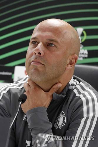 epa09534260 Feyenoord's head coach Arne Slot attends a press conference in Rotterdam, Netherlands, 20 October 2021. Feyenoord will face Union Berlin in their UEFA Conference League group stage soccer match on 21 October 2021. EPA/Jeroen Putmans