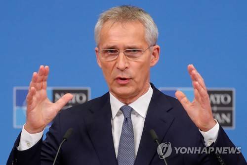 epa09534266 NATO Secretary General Jens Stoltenberg speaks to press during a pre-ministerial press conference at the headquarters in Brussels, Belgium, 20 October 2021. Meetings of the North Atlantic Council (NAC) at the level of Defence Ministers will be held at the NATO Headquarters on 21 and 22 October 2021. EPA/STEPHANIE LECOCQ