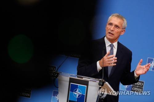 epa09534268 NATO Secretary General Jens Stoltenberg speaks to press during a pre-ministerial press conference at the headquarters in Brussels, Belgium, 20 October 2021. Meetings of the North Atlantic Council (NAC) at the level of Defence Ministers will be held at the NATO Headquarters on 21 and 22 October 2021. EPA/STEPHANIE LECOCQ