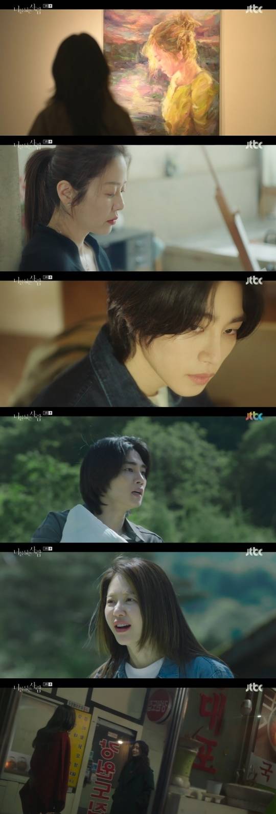 다시 현재 구해원은 다시 한번 "선배가 언니를 많이 보고 싶어한다"며 알 수 없는 미소를 지어 세 사람 사이의 과거에 궁금증을 더했다. (사진=JTBC '너를 닮은 사람' 캡처)