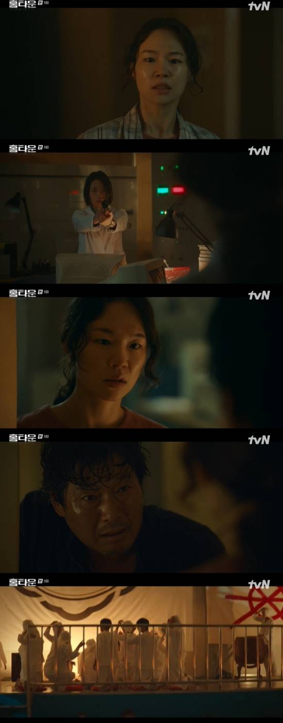 20일 방송된 tvN 수목드라마 '홈타운' 9회에서는 조정현(한예리 분)과 최형인(유재명)이 영진교 신도들의 집단 극단적 선택을 막기 위해 노력하는 모습이 그려졌다.