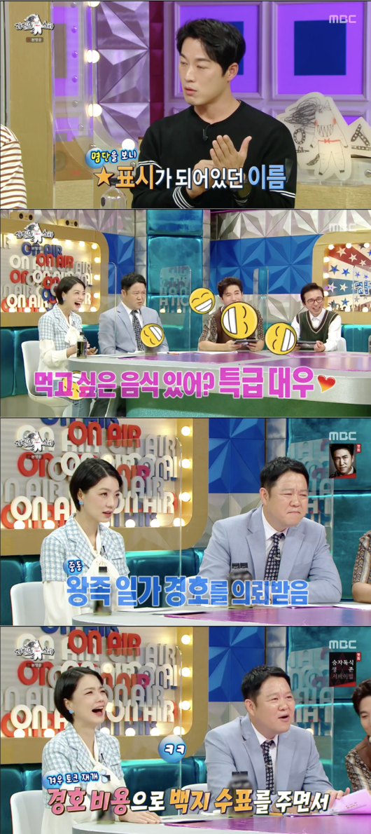최영재는 “아랍 쪽 VIP를 많이 만났다. 특수 교육을 가르쳐주는데 눈이 초롱초롱했다. 리스트를 보니까 별표가 돼 있었다. 왕족이라는 뜻이었다. 먹고 싶은 음식을 물어봤더니 할랄 음식이라고해서 이태원에서 음식을 공수해서 줬다”라고 말했다.