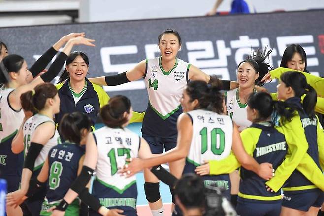 승리에 환호하는 현대건설 배구단