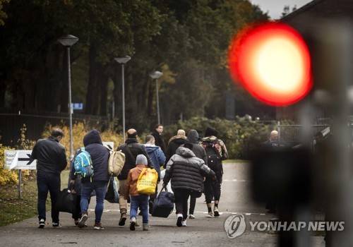 epa09534341 Newly arrived asylum seekers on their way to the application center for asylum seekers in the Groningen village of Ter Apel, The Netherlands, 20 October 2021. Ter Apel's municipal council seeks agreements with the central government about the reception of a maximum of 2,000 people as the asylum seekers' center is overcrowded. EPA/REMKO DE WAAL