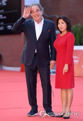 epa09534346 US director Oliver Stone (L) and his wife Sun-jung Jung (R) arrive for the screening of 'JFK: Destiny Betrayed ' at the 16th annual Rome International Film Festival, in Rome, Italy, 20 October 2021. The Festa Del Cinema Di Roma runs from 14 to 24 October. EPA/ETTORE FERRARI