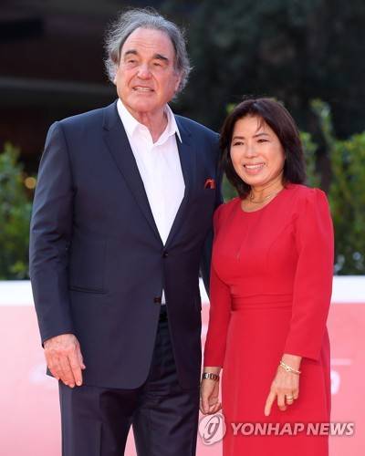 epa09534347 US director Oliver Stone (L) and his wife Sun-jung Jung (R) arrive for the screening of 'JFK: Destiny Betrayed ' at the 16th annual Rome International Film Festival, in Rome, Italy, 20 October 2021. The Festa Del Cinema Di Roma runs from 14 to 24 October. EPA/ETTORE FERRARI