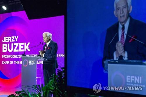 epa09534940 Former Polish Prime Minister and former EP president Jerzy Buzek delivers a speech during the European Forum for New Ideas (EFNI) in Sopot, nothern Poland, 20 October 2021. EFNI is organized by the Lewiatan Confederation in collaboration with BusinessEurope, the City of Sopot. EPA/PIOTR WITTMAN POLAND OUT