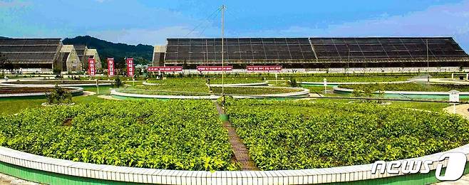 (평양 노동신문=뉴스1) = 북한 노동당 기관지 노동신문은 21일 '조국의 북변땅은 위대한 어버이사랑을 노래한다'는 제목의 중평남새온실농장, 함경북도양묘장 방문기를 실었다. 신문은 "1년 전까지만 해도 잡초가 무성하던 중평지구가 한폭의 그림마냥 자기의 아름다운 자태를 드러내고 있었다"라고 설명했다.