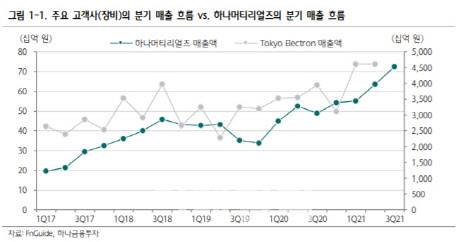 김 연구원은 "이와 같은 흐름은 4분기에도 지속될 것으로 전망한다"며 "국내 장비 고객사의 경우 하나머티리얼즈의 제품이 적용되는 반도체 장비의 종류(혹은 숫자)가 늘어나며 하나머티리얼즈의 매출 성장을 견인했다"고 진단했다.