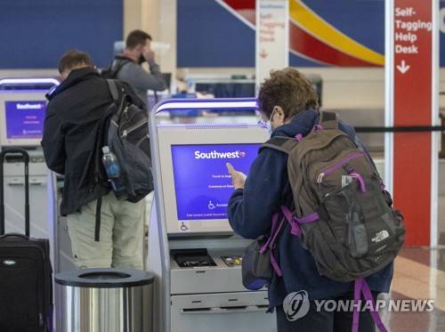 epa09535194 Southwest Airlines passengers check in for flights at Midway International Airport in Chicago, Illinois, USA, 20 October 2021. Southwest Airlines is scheduled to release its third quarter earnings before markets open on 21 October with analysts predicting a loss of $0.27 a share on $4.58 billion in revenue. EPA/TANNEN MAURY