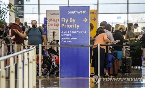 epa09535199 Southwest Airlines passengers queue to check in at Midway International Airport in Chicago, Illinois, USA, 20 October 2021. Southwest Airlines is scheduled to release its third quarter earnings before markets open on 21 October with analysts predicting a loss of $0.27 a share on $4.58 billion in revenue. EPA/TANNEN MAURY