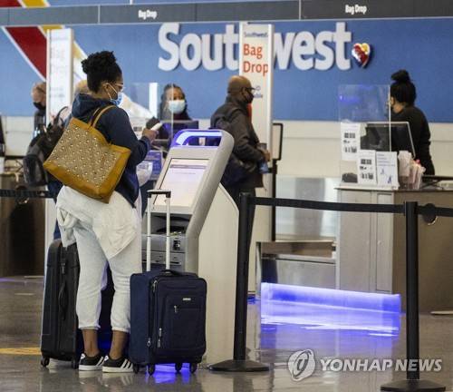 epa09535197 Southwest Airlines passenger check in for flights at Midway International Airport in Chicago, Illinois, USA, 20 October 2021. Southwest Airlines is scheduled to release its third quarter earnings before markets open on 21 October with analysts predicting a loss of $0.27 a share on $4.58 billion in revenue. EPA/TANNEN MAURY