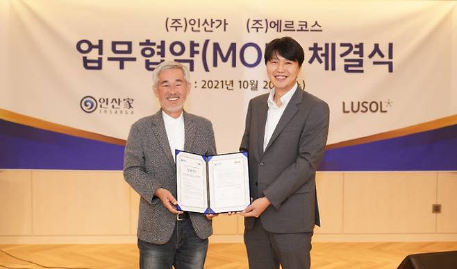 죽염전문업체 인산가(277410)와 이유식 제조업체인 에르코스가 지난 20일 경상남도 함양군 인산연수원 내 웰니스호텔에서 '공동제품 개발 및 판매에 관한 MOU'를 체결했다고 밝혔다.