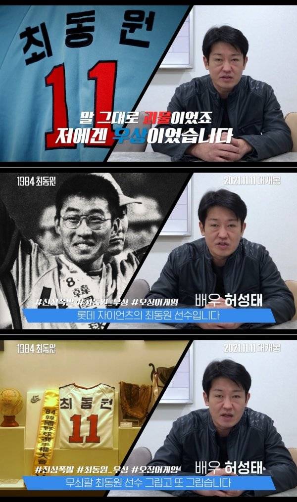 공개된 허성태 배우의 ‘1984 최동원’ 추천 영상은 “말 그대로 괴물이었죠. 저에겐 우상이었습니다”라고 최동원 선수에 대한 남다른 팬심을 드러낸 허성태의 모습으로 시작되며 눈길을 끈다. 허성태는 “가을이면 생각나는 사람이 저는 한 명이 있는데요. 바로 저의 우상이자 부산의 심장인 롯데 자이언츠의 최동원 선수입니다. 제가 고향이 부산이고 어렸을 때부터 롯데 자이언츠의 팬이었습니다”라고 깊은 존경을 표했다.