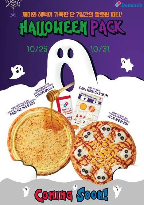 도미노피자 관계자는 "할로윈에 가족이나 친구, 연인과 함께 즐길 수 있도록 도미노에서 특별한 신제품을 출시한다"며 "도미노 할로윈 팩과 함께 즐거운 할로윈 보내시길 바란다"고 말했다.