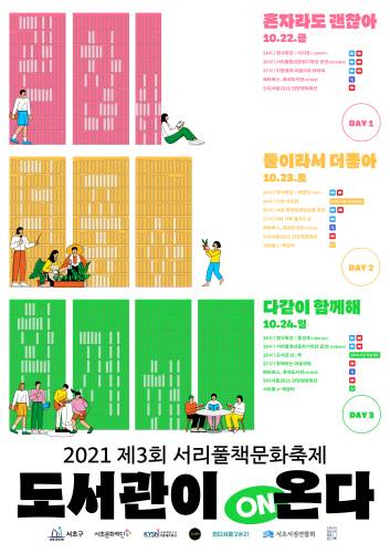 서울 서초구(구청장 조은희)는 오는 22일부터 24일까지 3일간 4곳의 서초구립도서관 연합인 '제3회 서리풀책문화축제-도서관이 ON다'를 온·오프라인으로 연다.