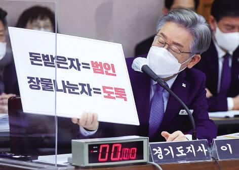지난 18일과 20일 더불어민주당 대선 후보인 이재명 경기도지사가 출석한 가운데 경기 수원시 경기도청에서 각각 치러졌던 국회 행정안전위원회와 국토교통위원회의 경기도 국정감사에서 대장동 특혜 의혹과 관련한 이 지사와 야당간의 공방은 '손팻말' 싸움으로 특히 눈길을 끌었다.