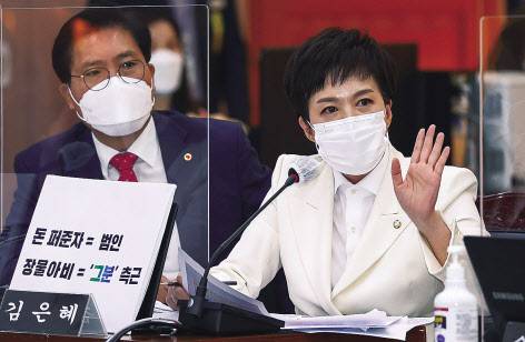 지난 18일과 20일 더불어민주당 대선 후보인 이재명 경기도지사가 출석한 가운데 경기 수원시 경기도청에서 각각 치러졌던 국회 행정안전위원회와 국토교통위원회의 경기도 국정감사에서 대장동 특혜 의혹과 관련한 이 지사와 야당간의 공방은 ‘손팻말’ 싸움으로 특히 눈길을 끌었다. 이 지사(①)가 “돈받은자=범인 장물나눈자=도둑”이라는 문구로 국민의힘을 공격했고, 이에 대해 정의당 대선 후보인 심상정 의원(②)과 국민의힘 박성민(③)·김은혜(④)의원도 손팻말을 들고 나와 이 지사의 책임론을 주장했다. [국회사진기자단]