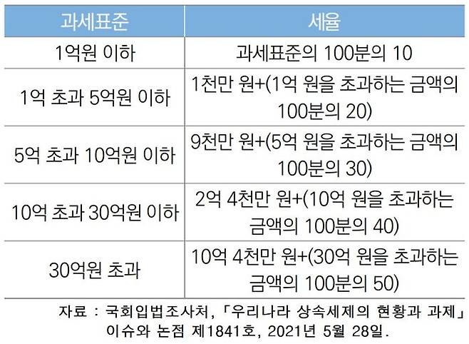 국회입법조사처, 이세진·김준헌 <우리나라 상속세제의 현황과 과제>, 이슈와 논점 제1841호, 2021년 5월