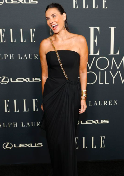 공개된 사진 속에는 우아하면서도 섹시한 블랙 드레스를 입고 포니테일 헤어스타일을 한 데미 무어의 모습이 담겨져 있다.