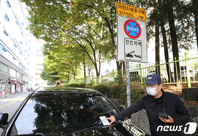 어린이보호구역 불법 주·정차 금지를 어기게 되면 일반 도로 불법 주정차 과태료의 3배인 12만원(승용차 기준)이 부과된다. 2021.10.21/뉴스1