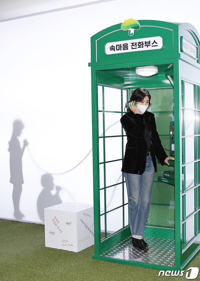 (서울=뉴스1) 권현진 기자 = 배우 채정안이 21일 서울 강남구 코엑스몰 아셈광장에서 열린 ‘#아이들의 목소리’ 캠페인 홍보대사 위촉식에 참석해 속마음 전화부스에서 전화기를 들고 포즈를 취하고 있다.