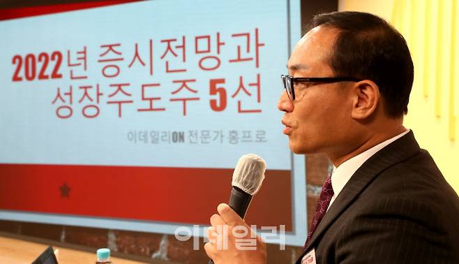홍광표 이데일리 ON 전문가 21일 오후 서울 중구 통일로 KG타워에서 열린 '2021 이데일리 하반기 Wealth Tour'에서 '2022년 증시전망과 성장주도주 5선'이란 주제로 강연을 하고 있다.