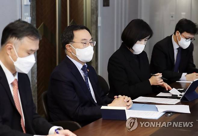 (서울=연합뉴스) 문승욱 산업통상자원부 장관(왼쪽 두 번째)이 21일 서울 소공동 롯데호텔에서 스클랴르 로만 바실리예비치 카자흐스탄 경제부총리와 면담하고 있다. 2021.10.21