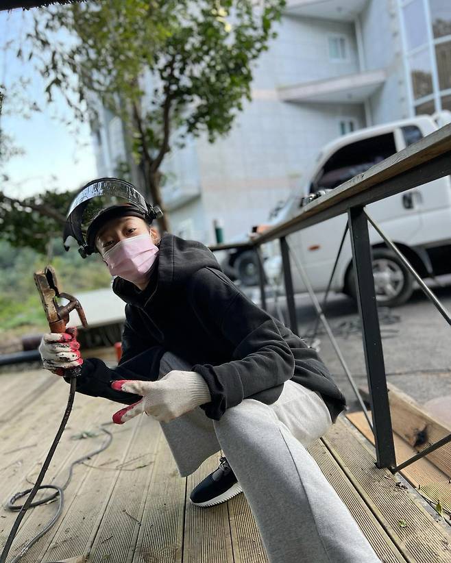 공개된 사진 속에는 용접을 하기 위해 제대로 복장을 갖추고 있는 최여진의 모습이 담겨 놀라움을 자아냈다.