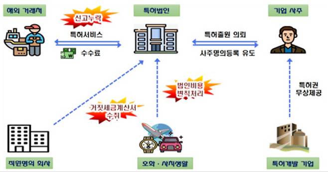고위공직자 출신 변리사 등이 소속된 C특허법인은 일감을 싹쓸이해 매출이 늘자 직원 명의로 컨설팅 업체를 만들어 자문료 명목으로 거짓 세금계산서를 받고, 외국법인 등으로부터 받은 수입금액도 신고 누락했다. C법인 대표 일가는 법인비용으로 명품 구입과 해외여행, 고가 승용차를 이용하는 등 호화생활을 누렸다.